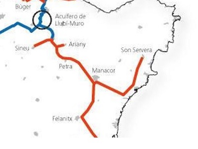 Ramal hacia el sur: una tubería de 2.639 m de longitud directa desde el futuro depósito de Manacor hacia el sur. También incluye la construcción de una arqueta de derivación desde la nueva conducción principal, procedente del depósito de Petra, hacia el sur, situada en el cruce del camino de Son Fangos con el camino de sa Creueta, para poder alcanzar el sur sin necesidad de pasar por el futuro depósito de Manacor. Ramal hacia Manacor: el proyecto prevé una conducción independiente hacia Manacor que empieza a la T de derivación y discurre por el camino de Son Coletes hasta el depósito elevado municipal.