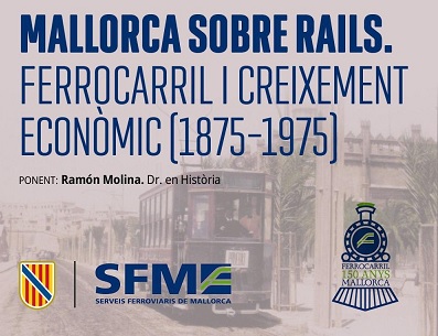 El papel del ferrocarril en la transformación económica de Mallorca centra una nueva conferencia de SFM en el edificio Términus el próximo miércoles. Serveis Ferroviaris de Mallorca (SFM) organiza el próximo miércoles día 15 una nueva conferencia en el edificio Términus, en la que se analizará el papel del ferrocarril en la transformación económica de Mallorca entre 1875 y 1975.