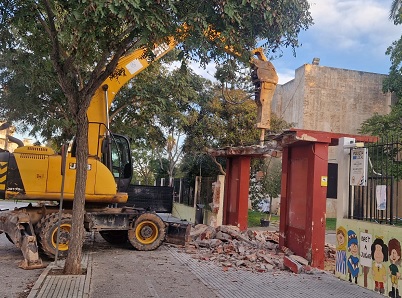 Comencen les obres d’enderrocament de la marquesina d’accés al Parc Municipal. Les obres d’enderrocament de la marquesina d’accés al Parc Municipal han començat aquest divendres de matí. Aquesta estructura, que es trobava en mal estat i presentava problemes estructurals, feia mesos que estava apuntalada per motius de seguretat.